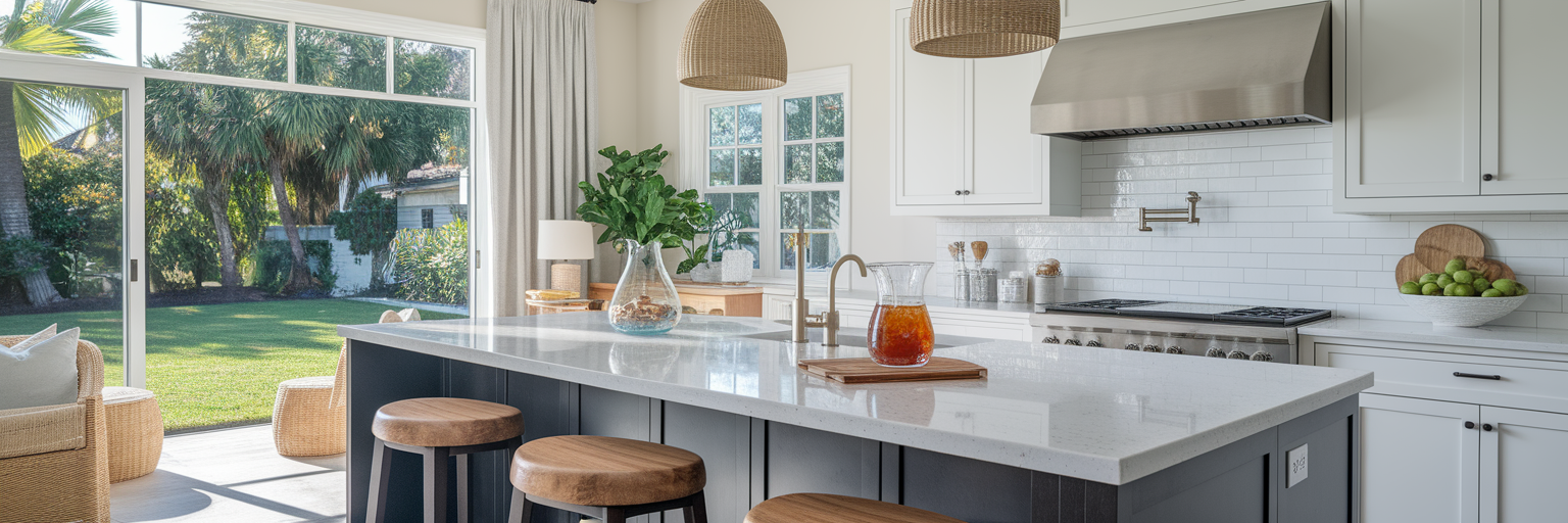Florida’s heat and humidity demand materials that are not only beautiful but also incredibly durable. Making smart choices here ensures your kitchen withstands the climate and looks great for years to come. Start with your countertops, as they are one of the most heavily used surfaces in the room.